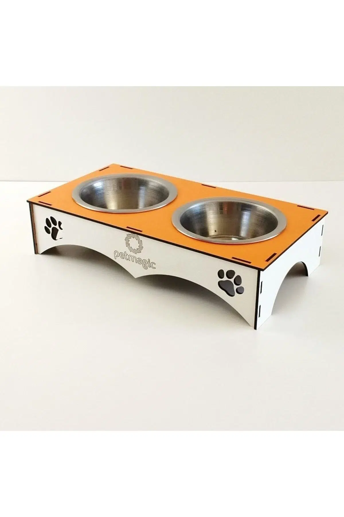 Petmagic 2'li Mama Kabı Ikili Ahşap-Çelik Mama Kabı Turuncu
