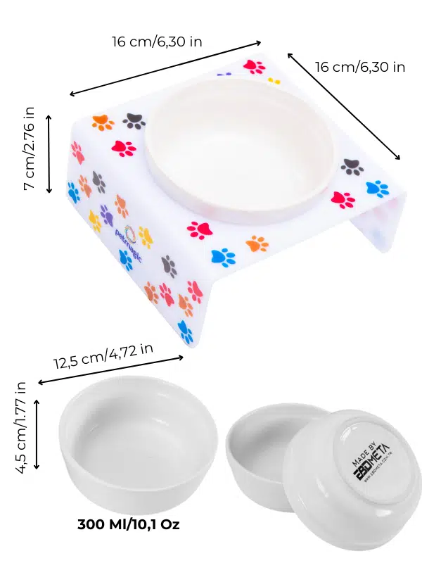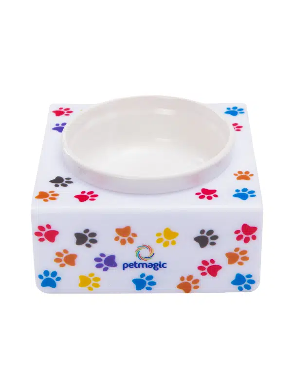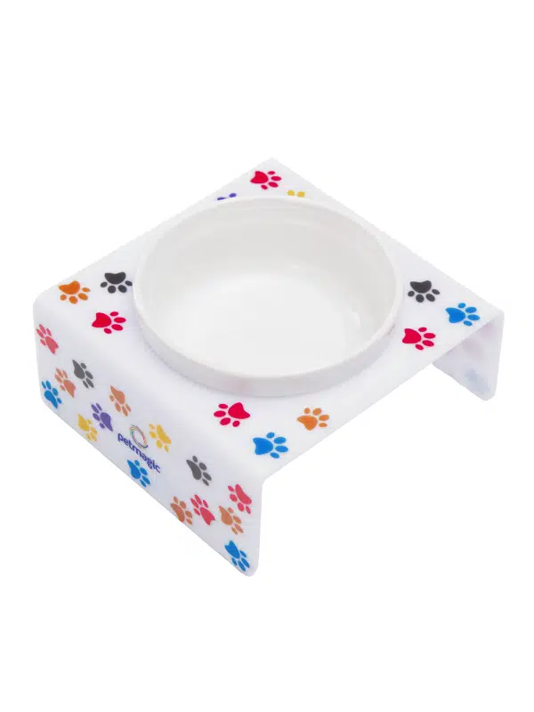 Petmagic Akrilik Beyaz Seramik Tekli Evcil Hayvan Kedi ve Mini Irk Köpek Mama Kabı-Beyaz Pati