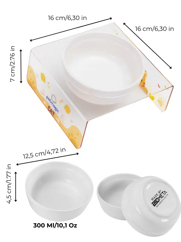 Petmagic Akrilik Beyaz Seramik Tekli Evcil Hayvan Kedi ve Mini Irk Köpek Mama Kabı-Şeffaf Cat