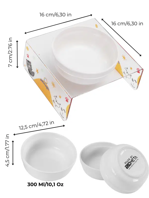 Petmagic Akrilik Beyaz Seramik Tekli Evcil Hayvan Kedi ve Mini Irk Köpek Mama Kabı-YuvarlananKedi