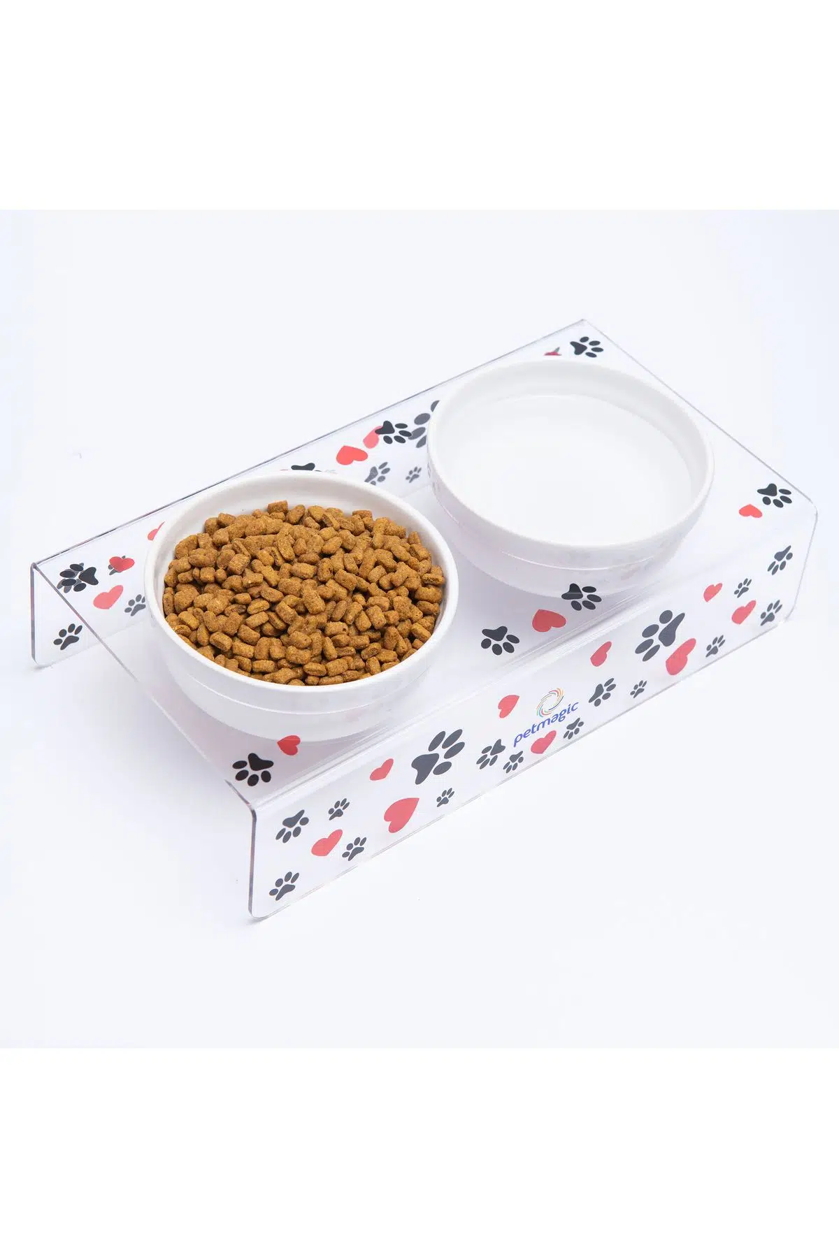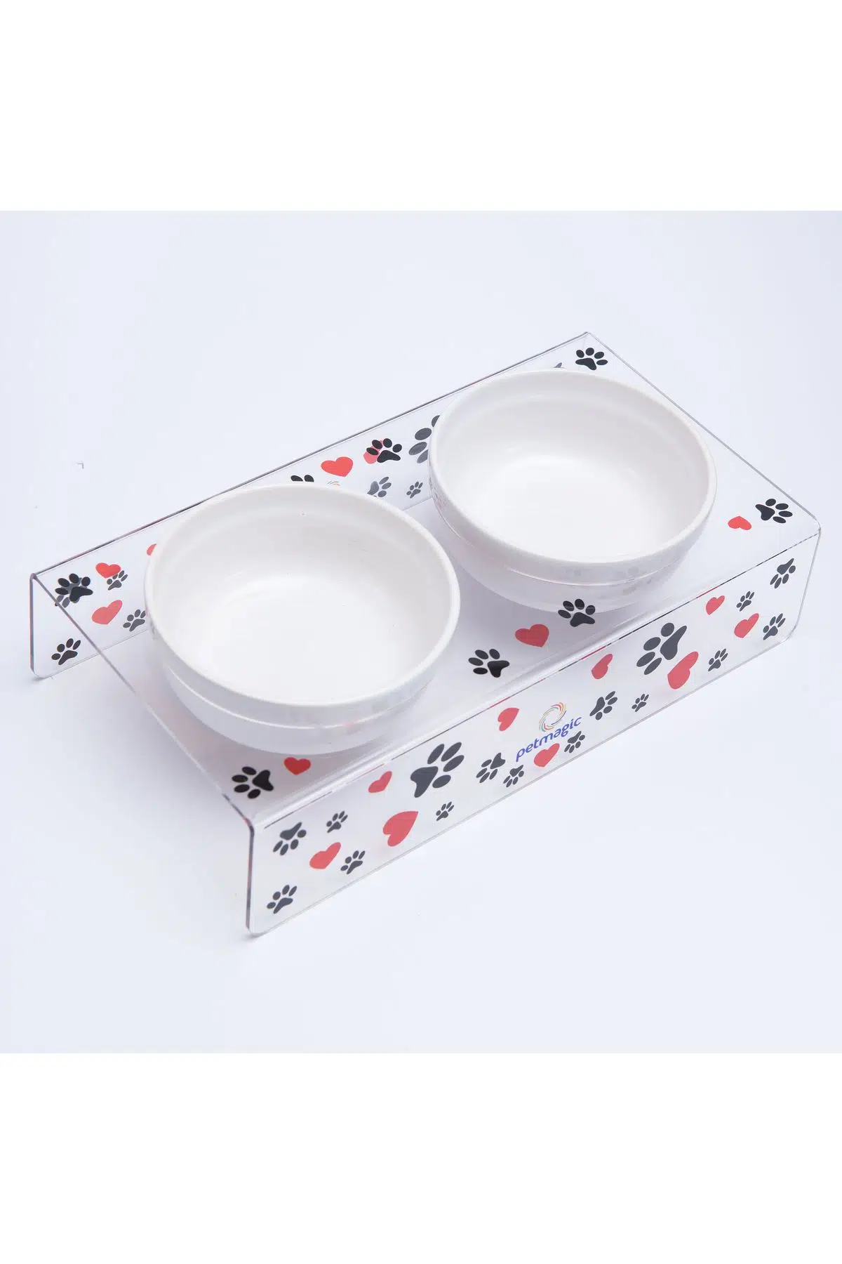 Petmagic Akrilik Pleksi Evcil Hayvan Beyaz Seramik Kaseli Kedi ve Mini Köpek Mama Ve Su Kabı- Siyah Patili Ürün Özellikleri: Patili dostlarımız için sağlıklı yemek ve su içmeleri için özel olarak üretmiş olduğumuz ürün 1. Sınıf Pleksiglass malzemeden üretilmiştir. Pleksigalss (akrilik) malzeme camdan daha dayanıklı kırılmaya karşı dirençlidir. Ürüne ait bütün parçalar elde yıkamaya uygundur. Ürünün Ölçüleri : En : 16 Cm Boy: 30 Cm Yerden Yükseklik : 6 Cm (Kaseyle beraber 8 Cm) Kase Çap Ölçüsü 12,5 Cm. 1 Kase 400 ml. dir. Ürünlerimiz kedi ve mini ırk köpekler için özel olarak tasarlanmıştır. Eklemlerindeki ve omurgalarındaki baskıyı hafifleterek çok ergonomik bir beslenme deneyimi sunar. Bunun üzerine, yiyeceklerle daha az oynamaya ve evi dağıtmaya izin veriyorlar. Uzun ömürlü mobilyalara yapılan gerçek bir yatırımdır.