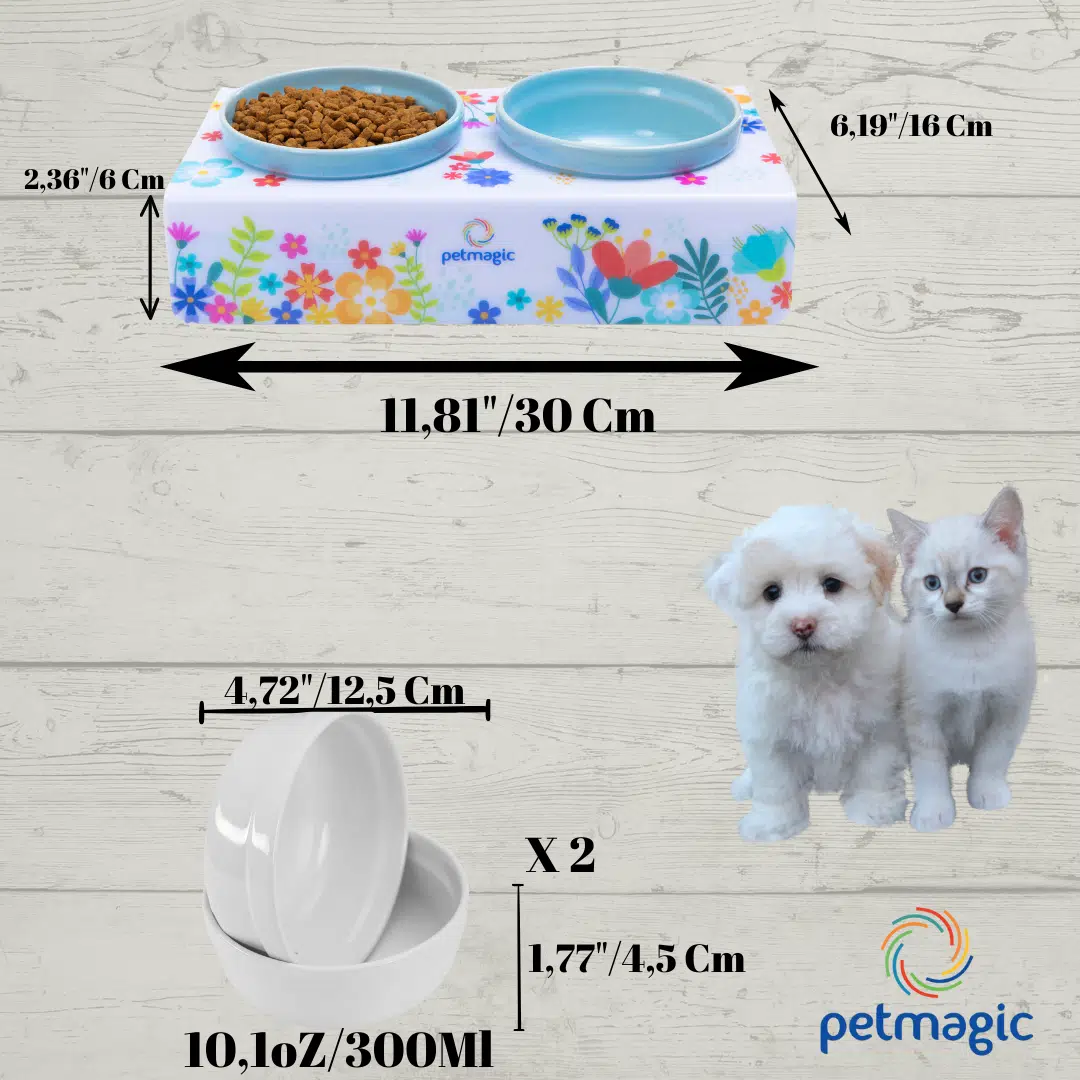 Petmagic Akrilik Pleksi Evcil Hayvan Mavi Seramik Kaseli Kedi ve Köpek Mama Su Kabı-Beyaz Bahar