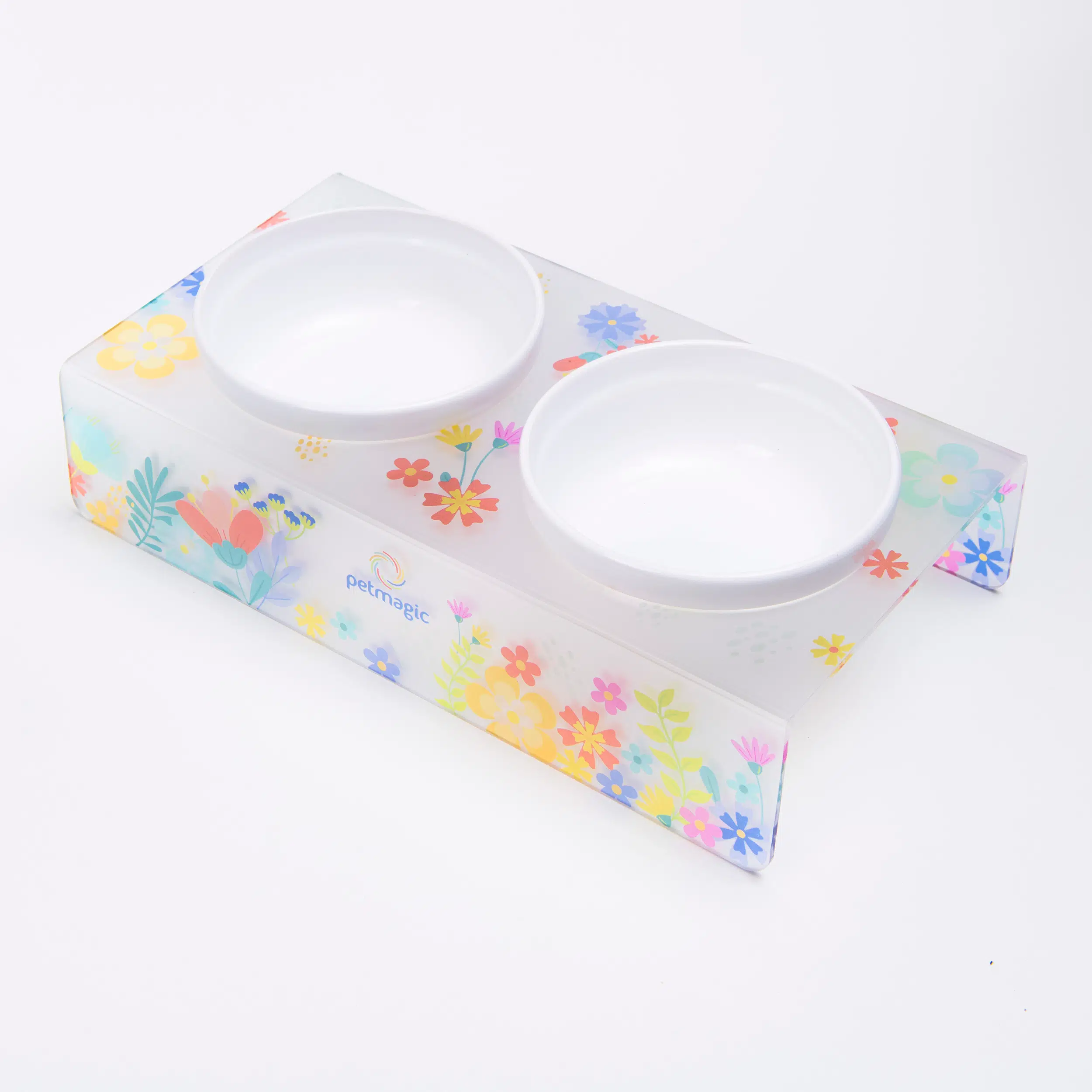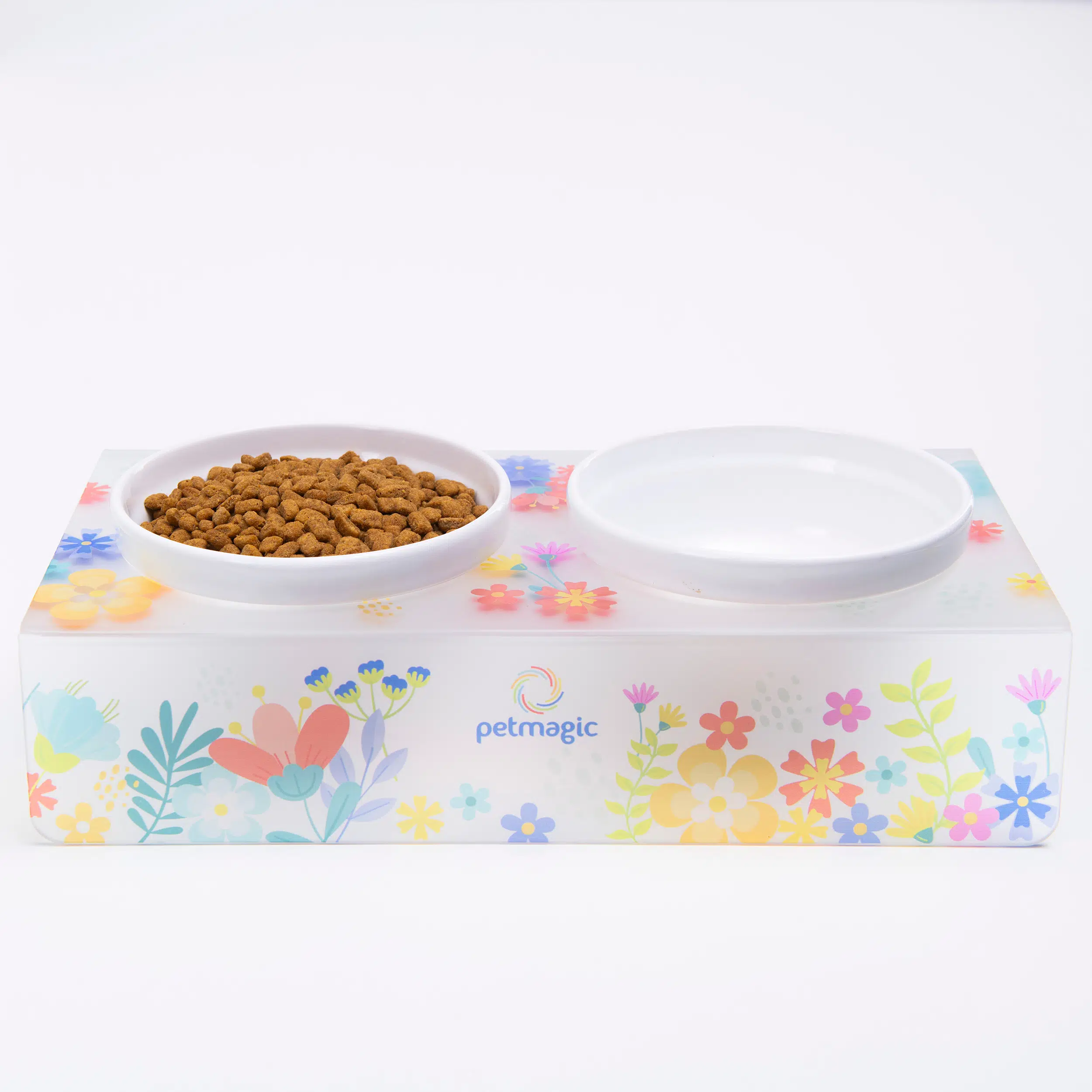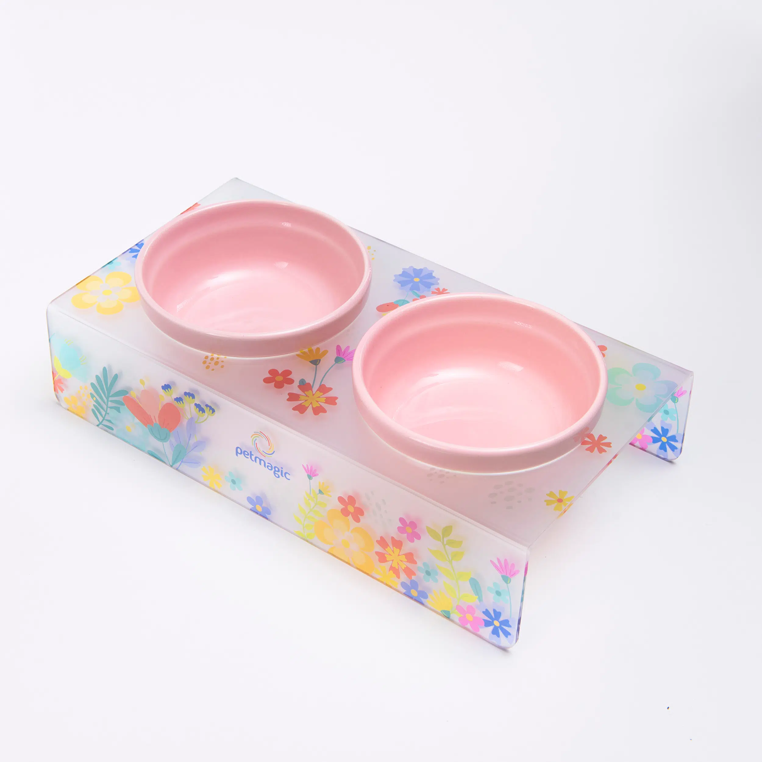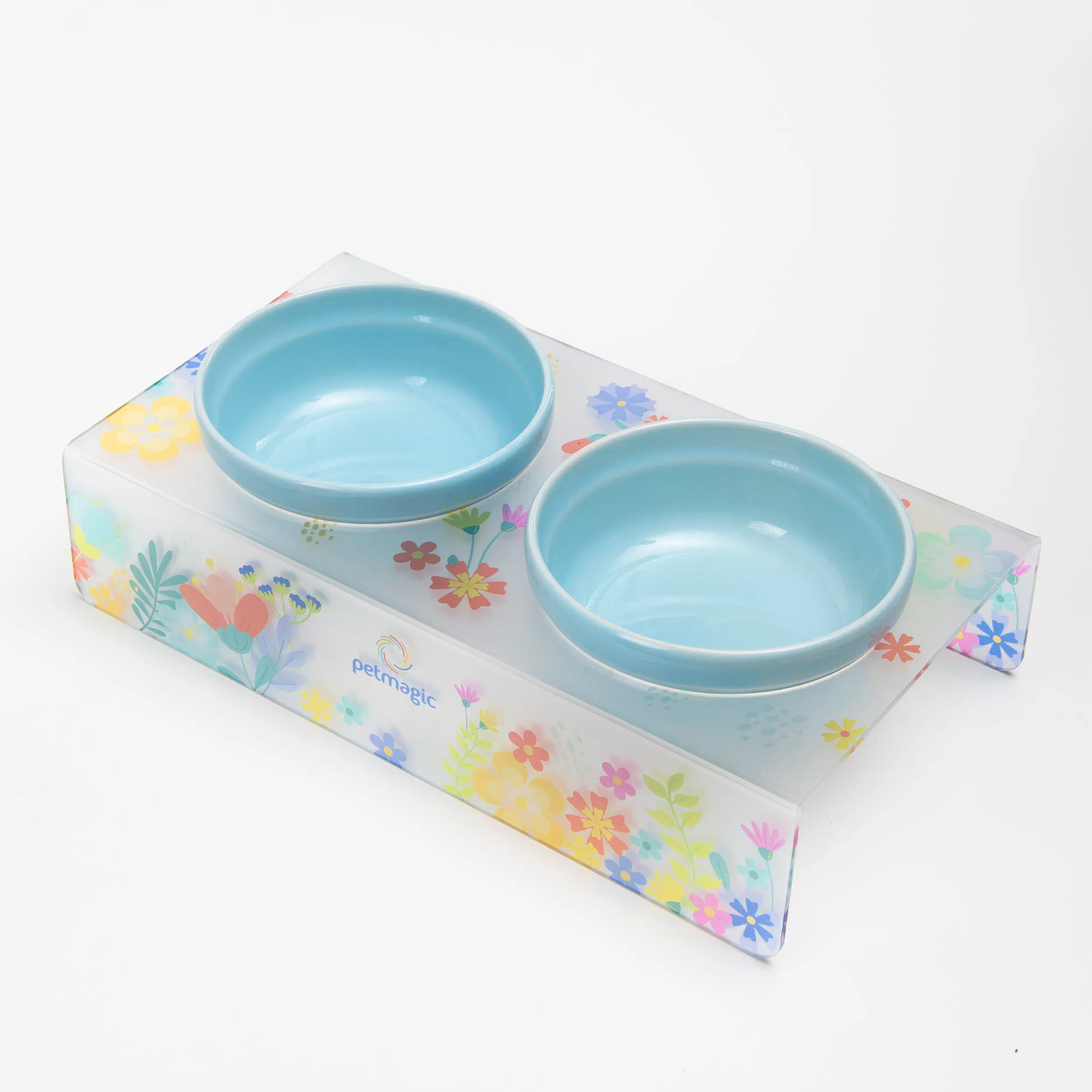 Petmagic Akrilik Pleksi Evcil Hayvan Renkli Seramik Kaseli Kedi ve Köpek Mama Su Kabı-Mat İlkbahar