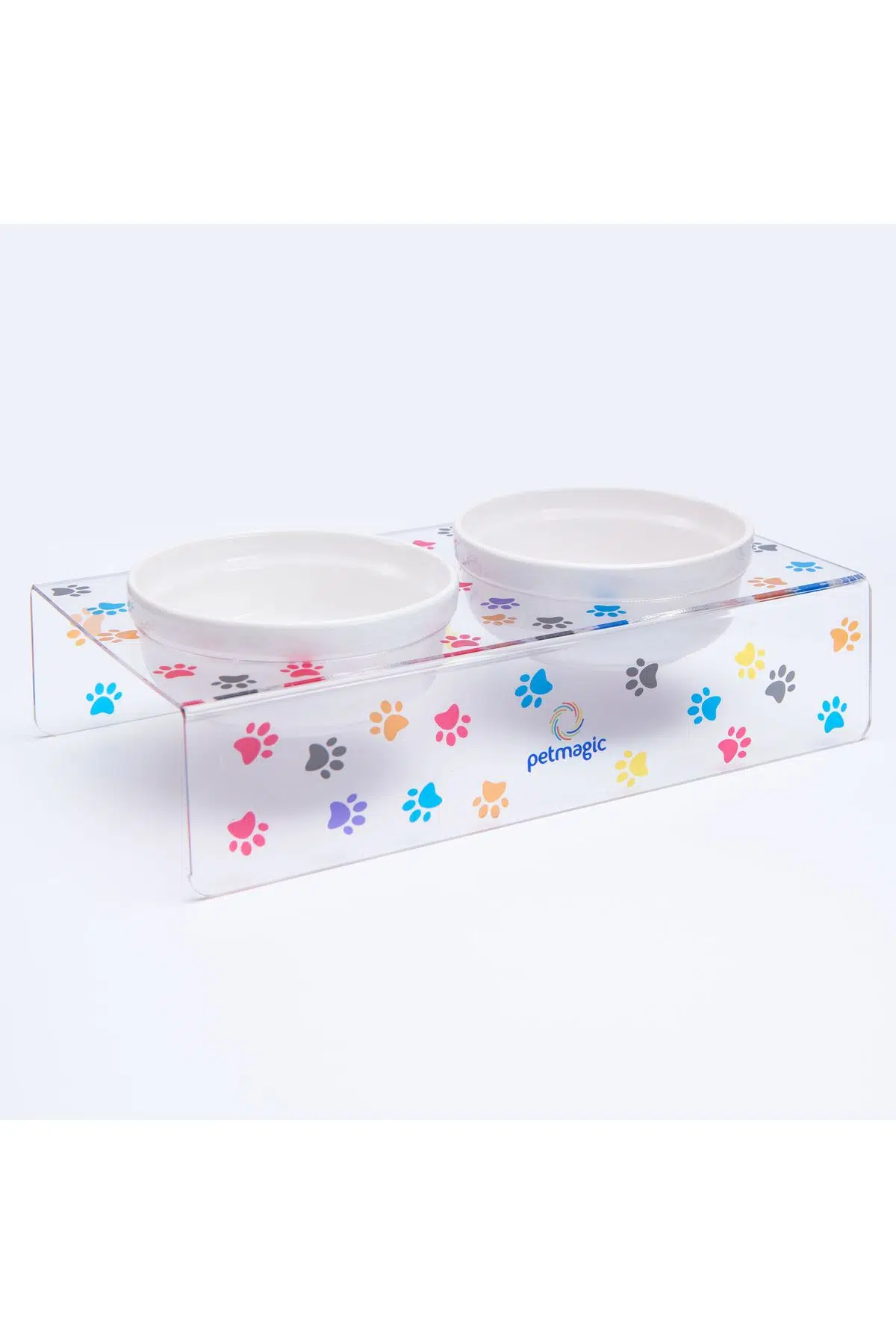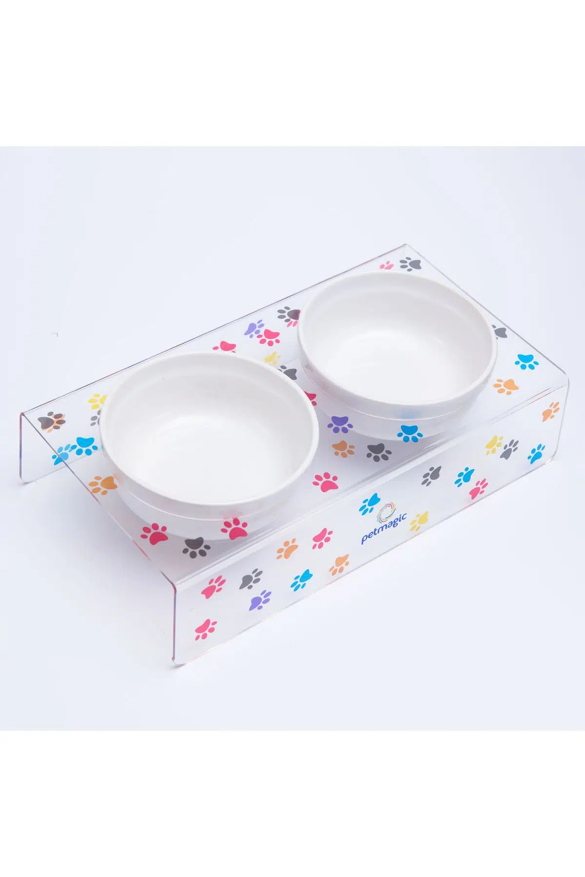 PetMagic Akrilik Pleksi Evcil Hayvan Seramik Kaseli Mama ve Su Kabı - Pati Baskılı Ürün Özellikleri: Patili dostlarımız için sağlıklı yemek ve su içmeleri için özel olarak üretmiş olduğumuz ürün 1. Sınıf Pleksiglass malzemeden üretilmiştir. Pleksigalss (akrilik) malzeme camdan daha dayanıklı kırılmaya karşı dirençlidir. Ürüne ait bütün parçalar elde yıkamaya uygundur. Ürünün Ölçüleri : En : 16 Cm Boy: 30 Cm Yerden Yükseklik : 6 Cm (Kaseyle beraber 8 Cm) Kase Çap Ölçüsü 12,5 Cm. 1 Kase 400 ml. dir. Ürünlerimiz kedi ve köpekler için özel olarak tasarlanmıştır. Eklemlerindeki ve omurgalarındaki baskıyı hafifleterek çok ergonomik bir beslenme deneyimi sunar. Bunun üzerine, yiyeceklerle daha az oynamaya ve evi dağıtmaya izin veriyorlar. Uzun ömürlü mobilyalara yapılan gerçek bir yatırımdır.
